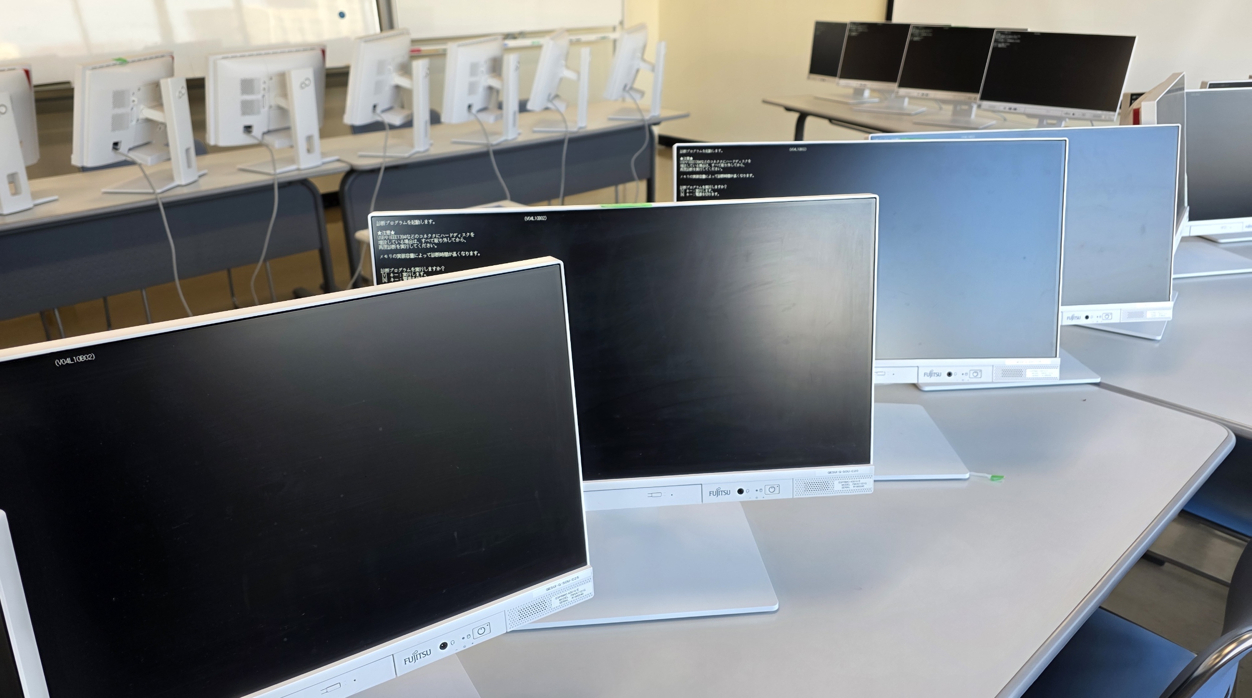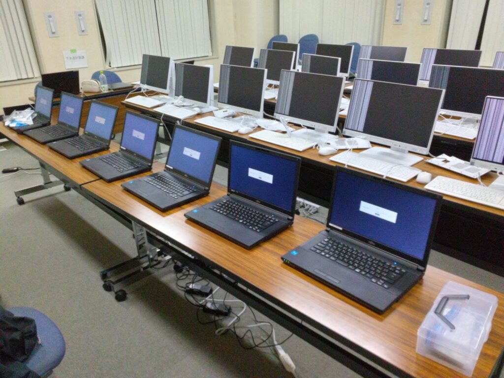 データ消去作業は、各指定場所において対象端末を仮設置し、受託者側で用意したOAタップ等を用いて安全に電源を確保したうえで実施しました。