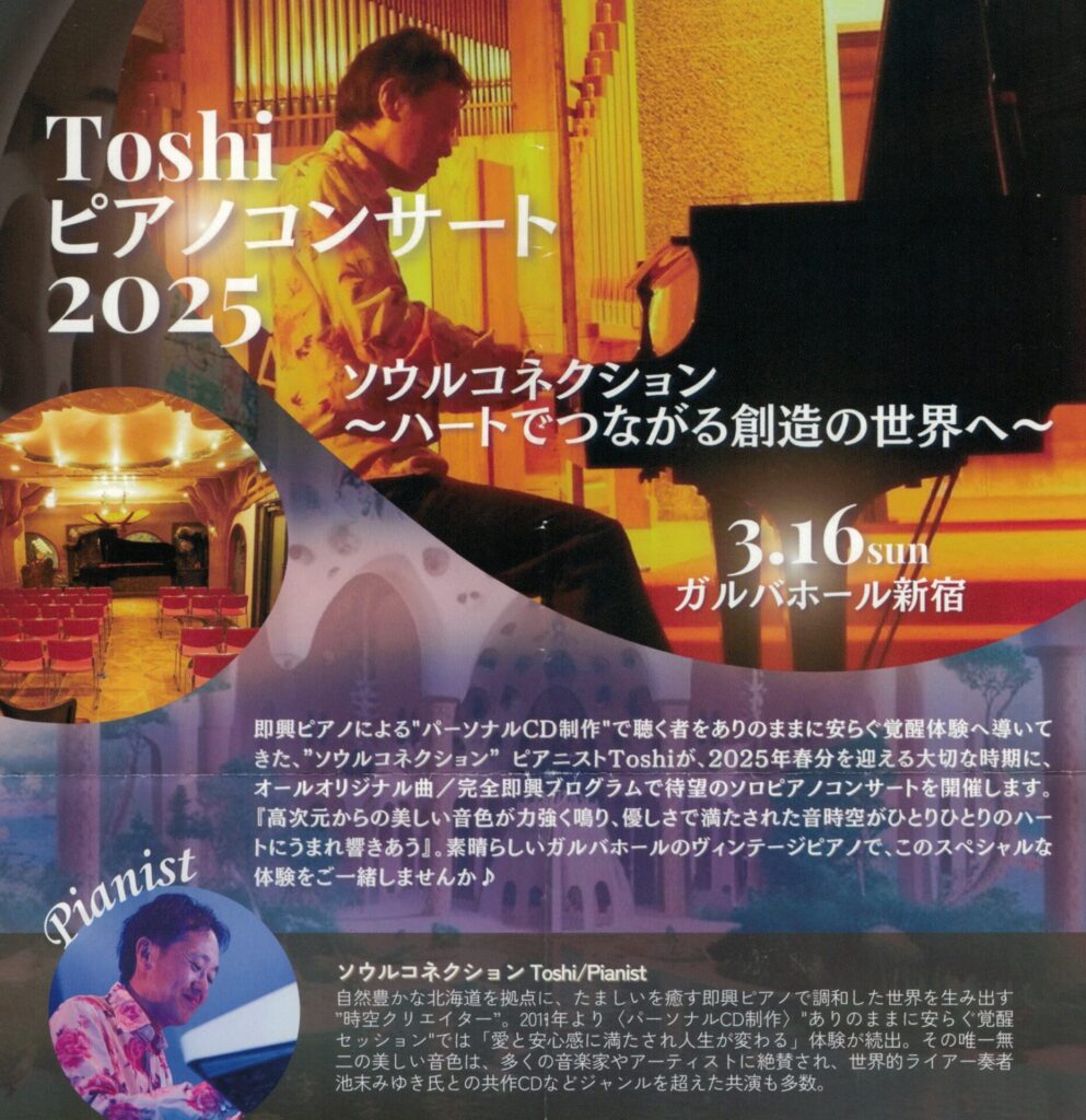 令和7年4月よりのBGM 2025.04.25 未分類 いのちのピアニスト有本紀(Toshi Arimoto)さんのピアノ曲を就労中のBGMとして流しています。自律神経が整い、皆さん活き活きと仕事に集中しています。 Xでシェア Facebookでシェア URLをコピー